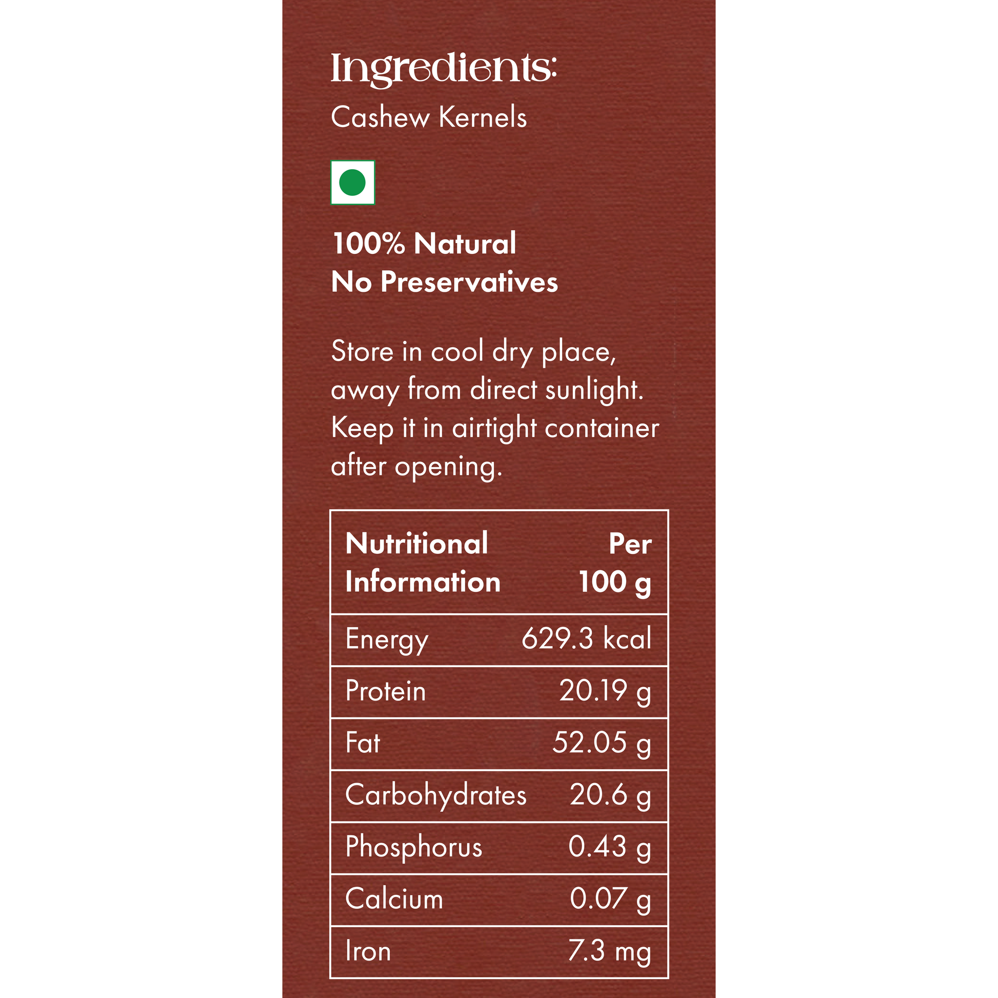 Ingredients: Cashew Kernels