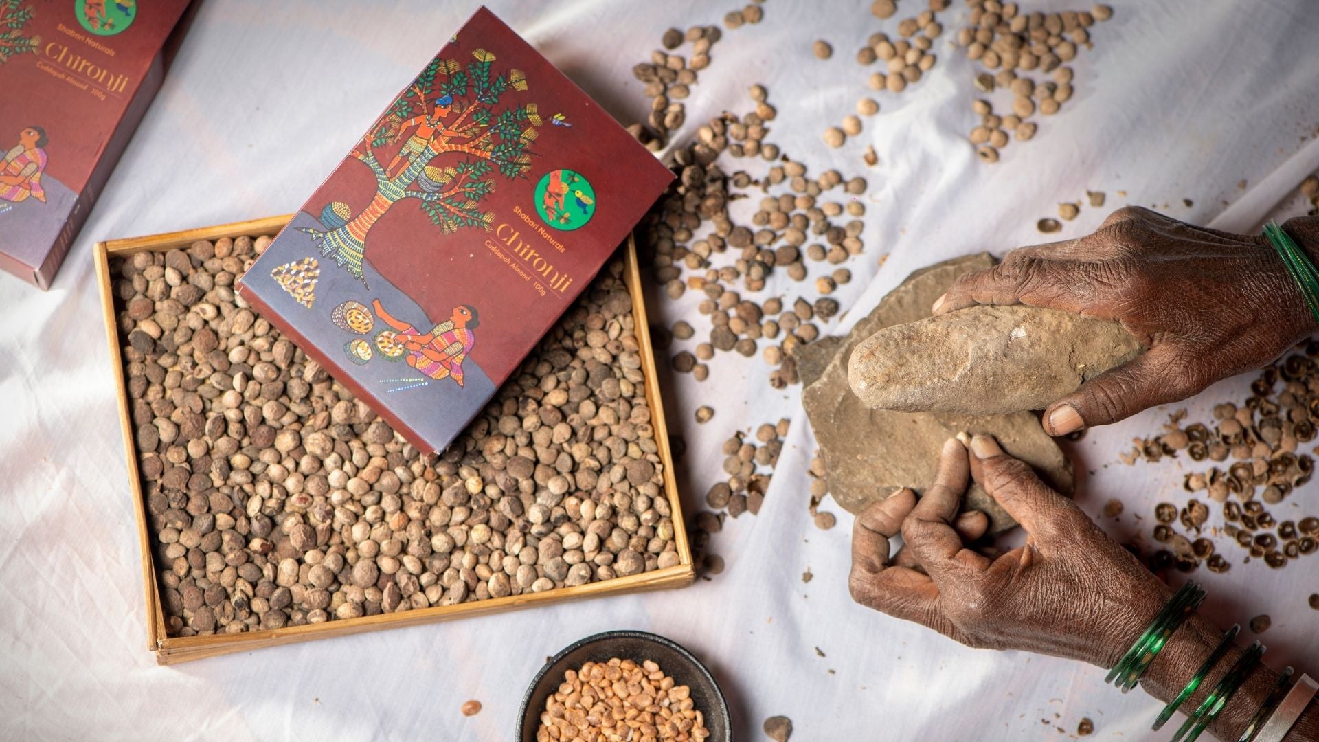 The relationship of the Warli tribal community with nature is truly profound. In Warli mythology, Kansari is the goddess of all living things, who carries the seeds of life; and is worshiped by women. In their traditional lifestyle, Warli women collect, store, and sow seeds. They were the earliest seed collectors and preservers. The tribal women continue to collect seeds even today, like the Chironji with beautiful texture.
