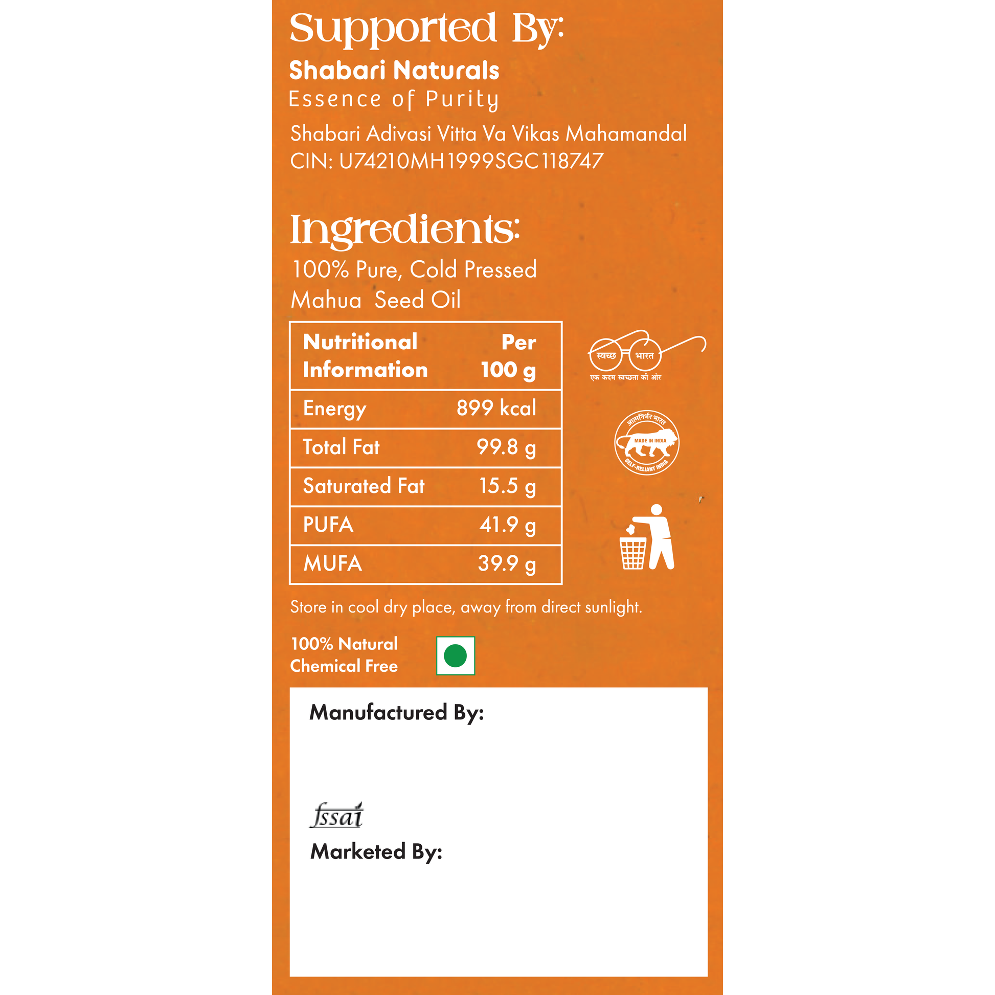Ingredients: 100% Pure, Cold Pressed Mahua Seed Oil
