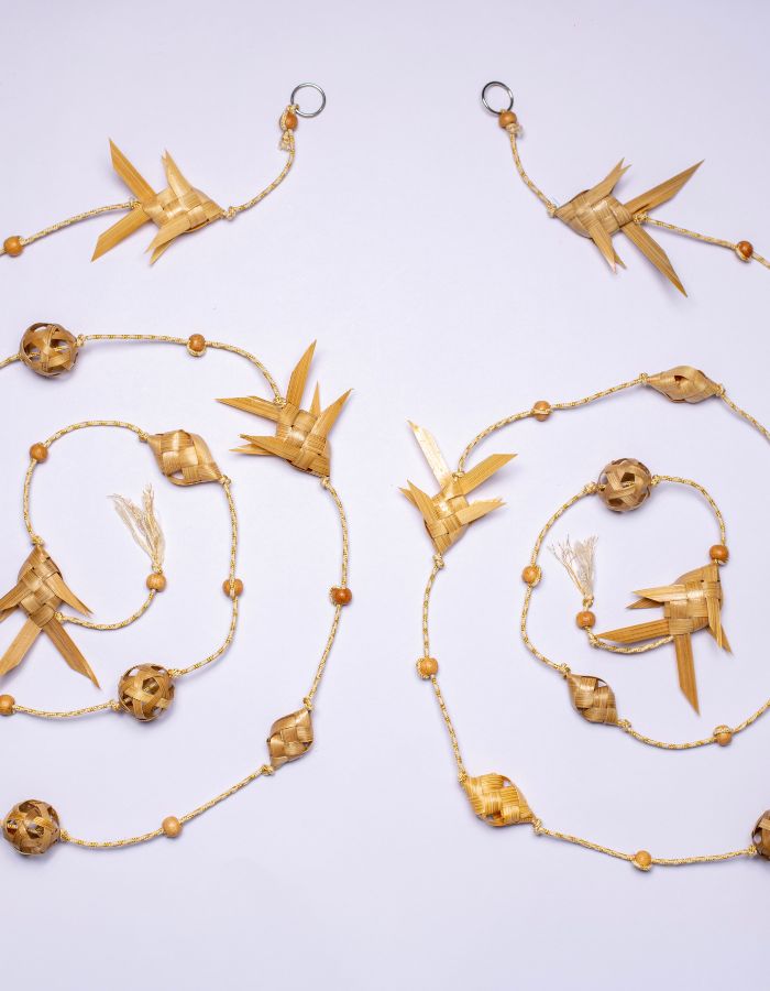 Every bamboo weave hums a quiet tune grounded, graceful, and full of life. Named after Sarang, the raga of devotion, and Lata, the vine that clings with love, this toran sings of balance. Its flowing form captures the dance of leaves and the patience of handmade craft.