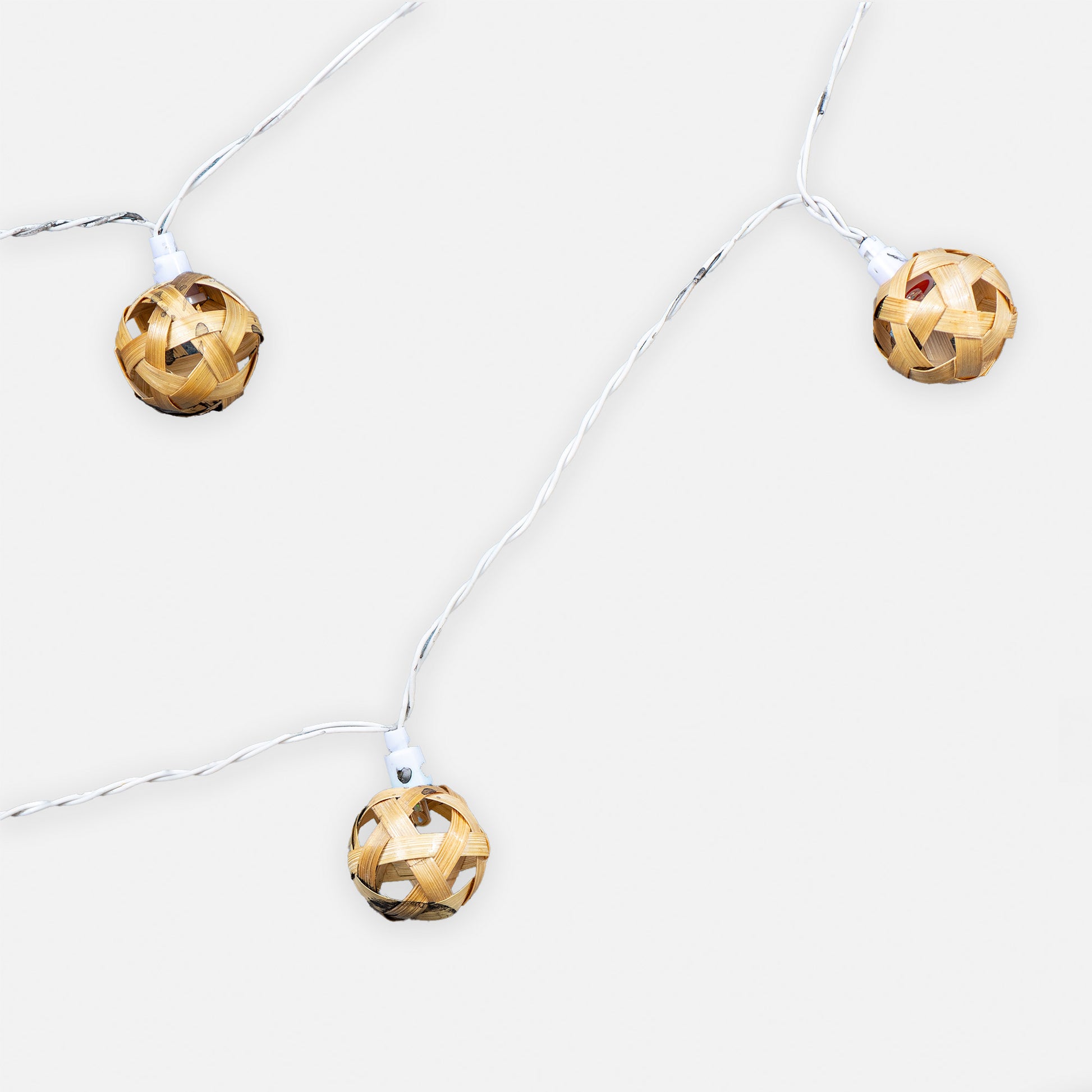 Softly glowing through handwoven bamboo casings, these single-color fairy lights bring a natural warmth to any space. Perfect for cozy corners, festive decor, or ambient lighting, they blend the charm of artisanal craft with subtle illumination. Each piece is thoughtfully assembled, adding an earthy elegance to mindful living spaces.