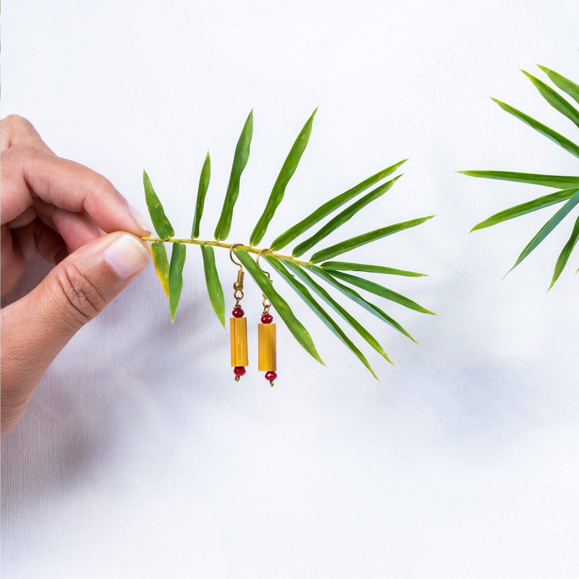 Simple, striking, and sustainable — these cylindrical bamboo earrings offer a refined silhouette with a raw, organic finish. Their lightweight form makes them perfect for everyday wear, while the handcrafted nature ensures each piece carries a quiet uniqueness rooted in artisanal tradition.